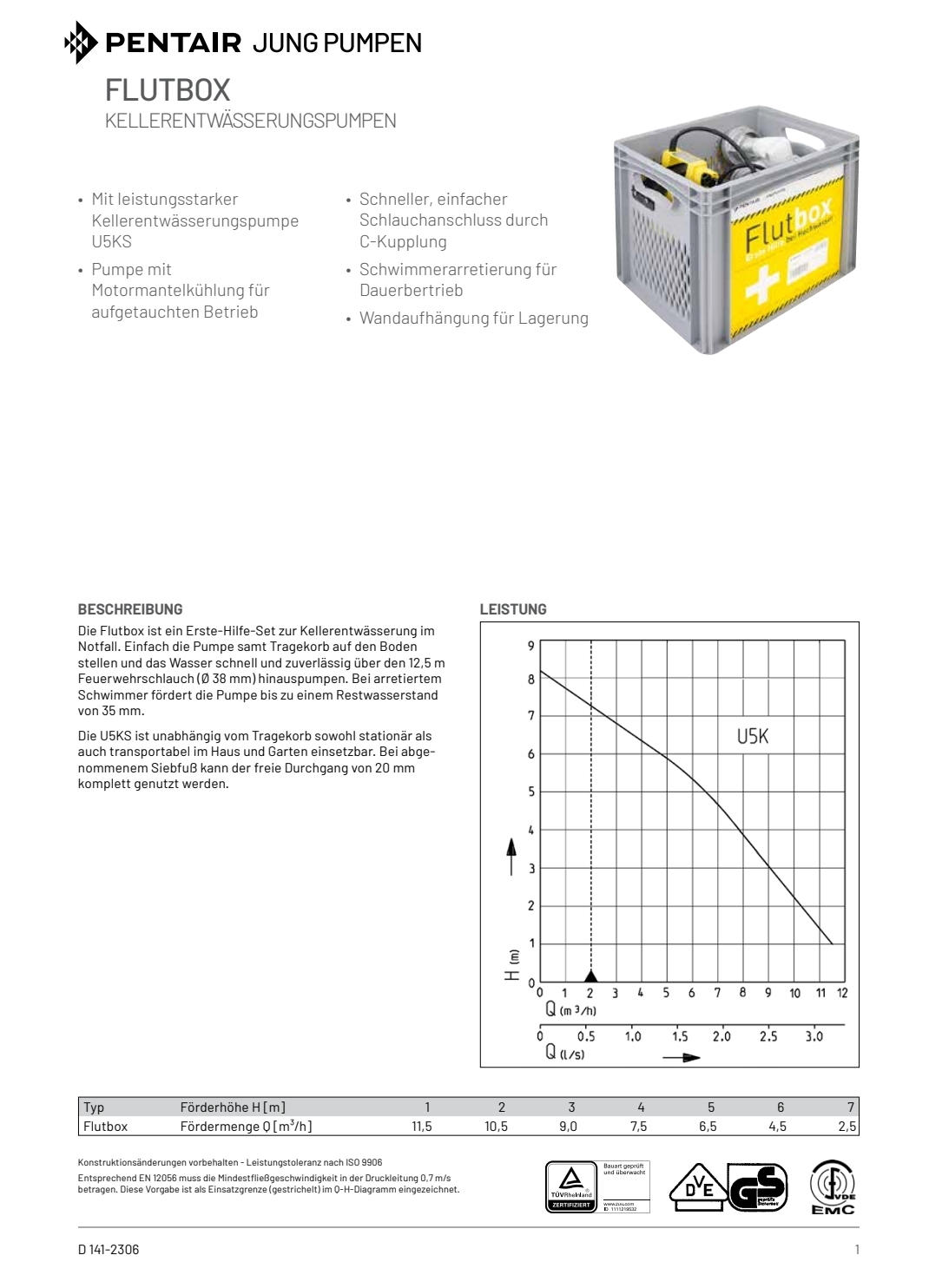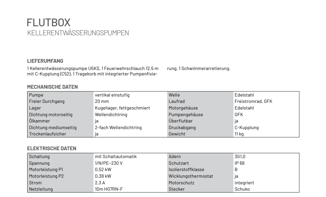 • Pumpenleistung max. 11,5 m³/h
