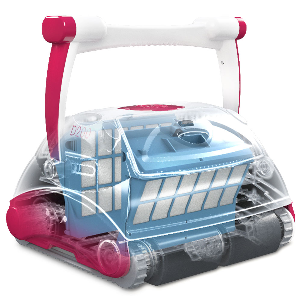 Mit nur 11 kg ist der D200 PLUS handlich und kompakt. Die sehr einfache Bedienung macht den Poolfreund unkompliziert und praktisch. Genau wie bei den Kollegen aus der B-Serie hat der Poolroboter einen zweifach verbauten 4D-Filter. Dieser ermöglicht es mikroskopisch (2 Mikron) kleine Schmutzpartikel festzuhalten. Dadurch reinigt er bis zu viermal besser als andere Geräte.