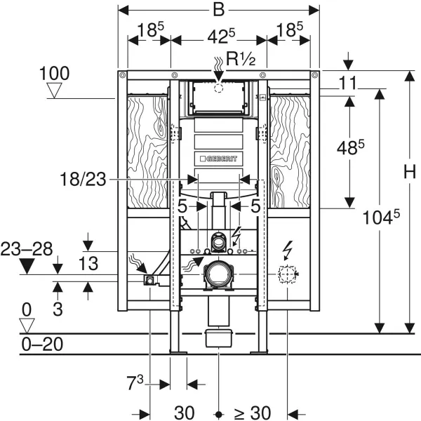 • Leerrohr für Wasseranschluss Geberit AquaClean